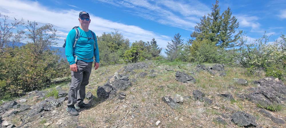 When we reached the saddle, Scott decided to just go up to the tree. Marilyn, Mark and I went to the top of Baldy. I was disappointed that someone had taken the marker off the rock. We quickly decided Scott had the right idea and we came right back down to have our lunch under the tree.