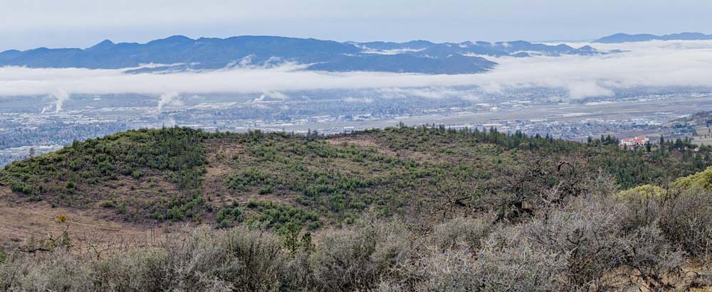 Thirteen hikers arrived at the upper parking lot for an excursion around Roxy Ann Mountain utilizing the recently surfaced Equestrian Trail. We started the day just above the fog and stayed that way throughout. We enjoyed a brisk day with lots of clouds and no rain.