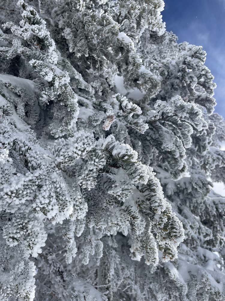 Due to the fact that there were times we were sinking in the snow up to our knees we decided to cut it short and stepped down an area so we could sit and enjoy the sun and our lunch. We took our time and then headed back to the cars. It was a beautiful day to be on the mountain.